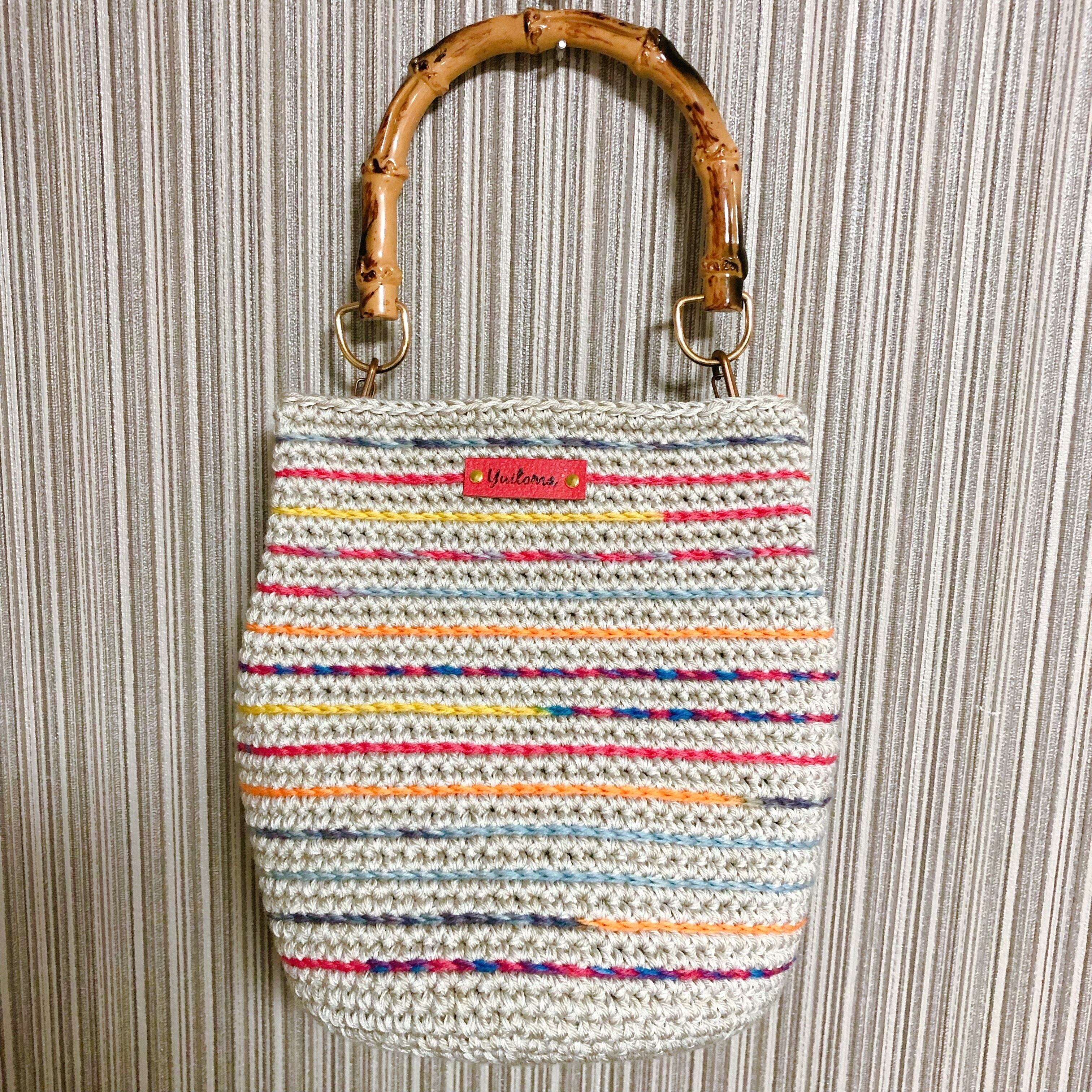 シンプルな色をベースに、こま編みできっちりした編み目に仕上げました。