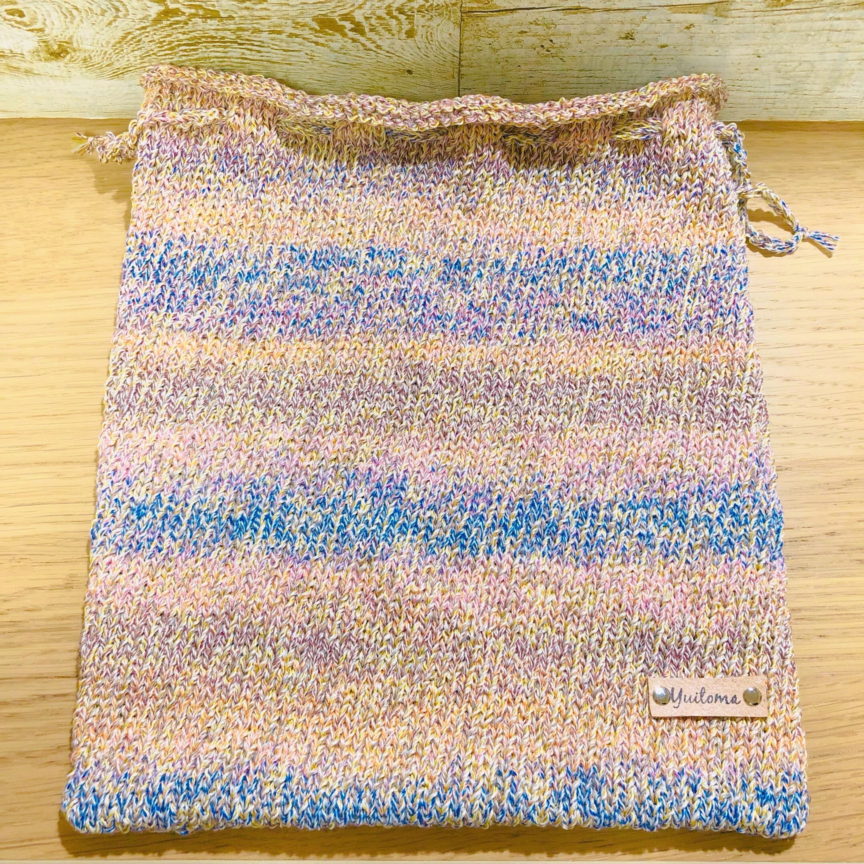 グラデーションが綺麗な糸で編み上げた巾着です♪しっかりとした仕上がりで、淡い色合いがとっても可愛いです。